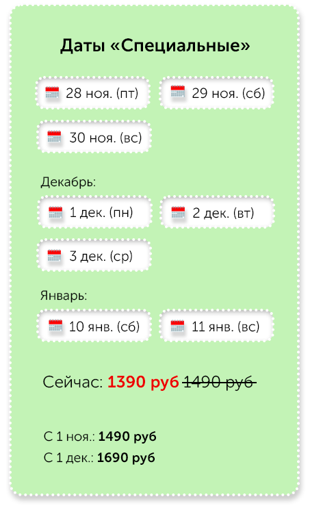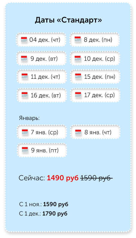 Вы вносите предоплату за группу всего 5000 руб, чтобы закрепить за собой дату