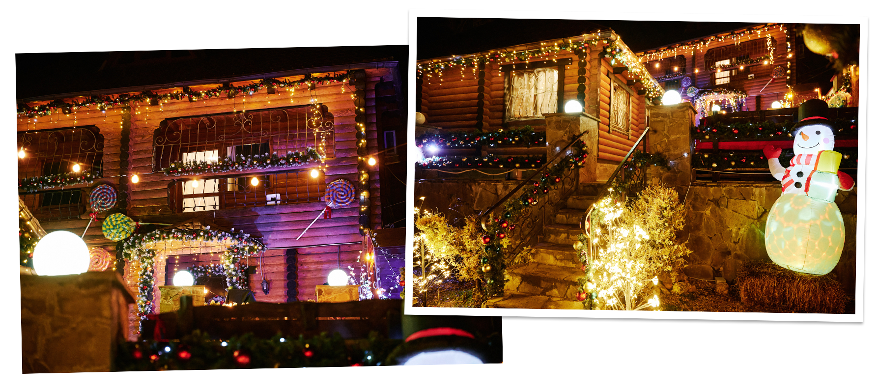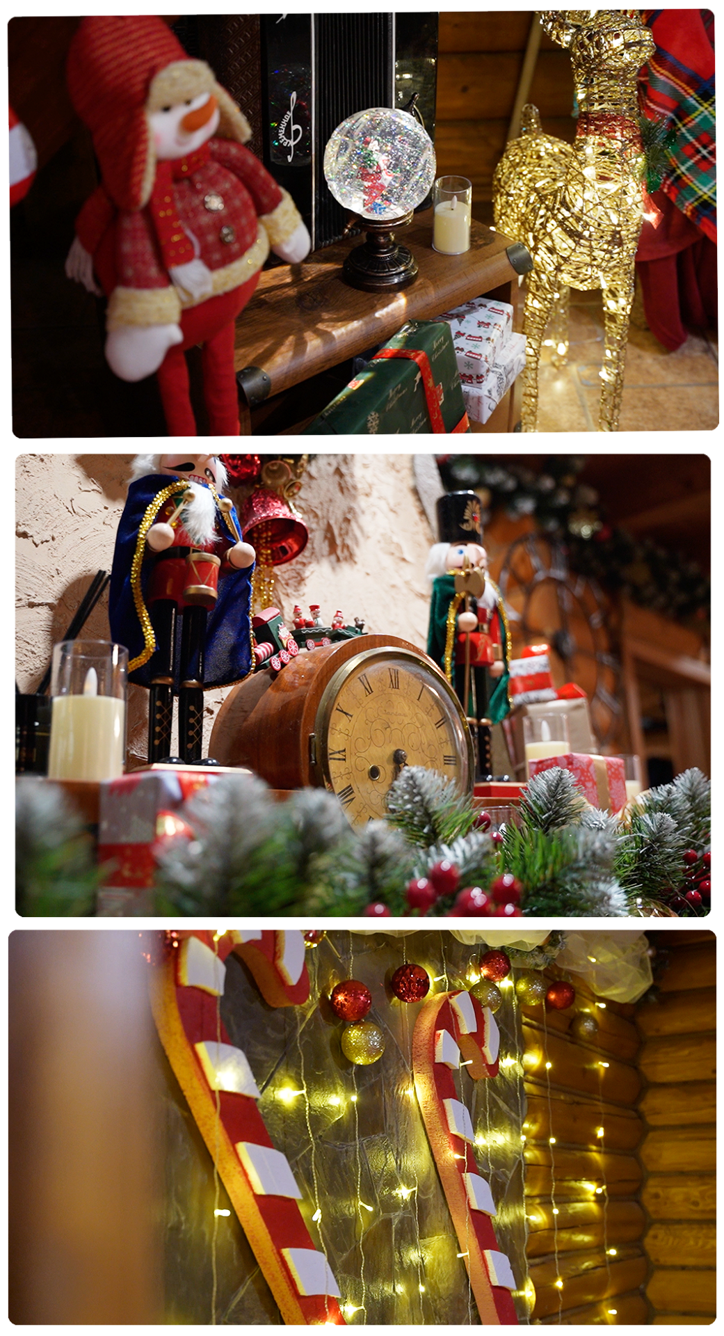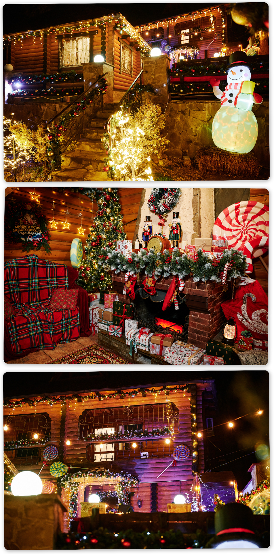 Деток ждет путешествие в настоящий деревянный дом 200 кв. м со сказочной, волшебной атмосферой и детализированным новогодним интерьером.
