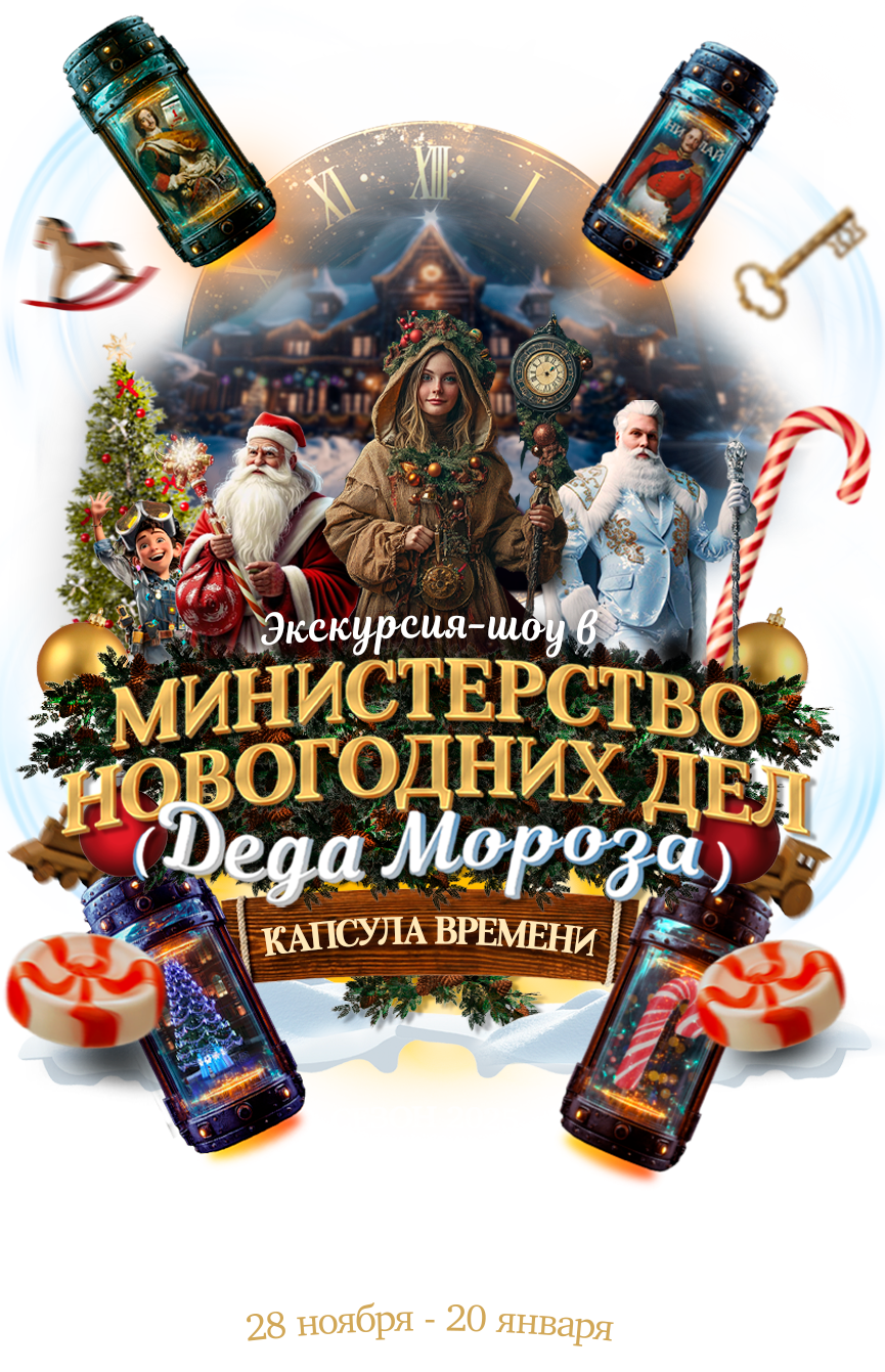 Большое новогоднее расследование! По ходу программы дети разгадают тайну хранителей времени, восстановят капсулы времени и выведут на чистую воду злодея министерства. Всё это будет красиво, загадочно и технологично!