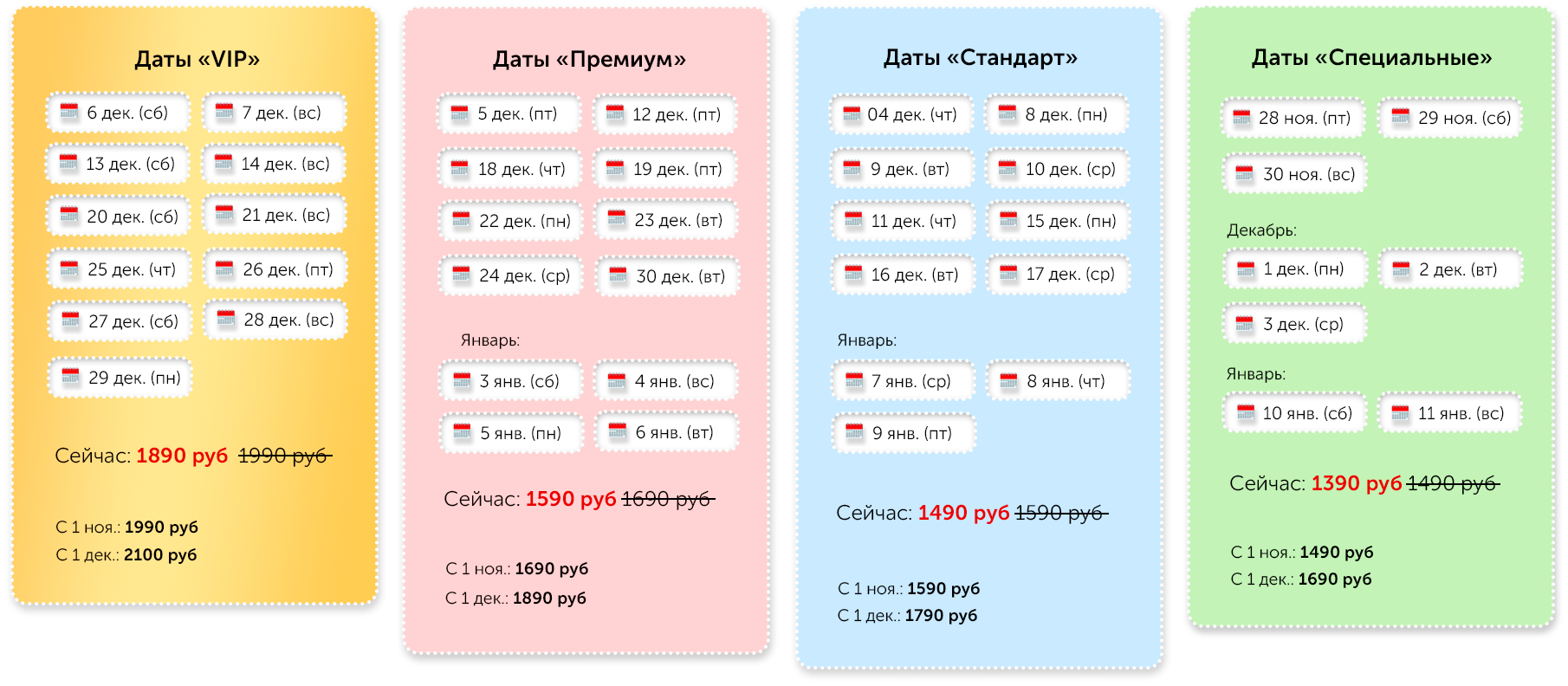 Цена зависит только от привлекательности даты и периода осуществления бронирования!
