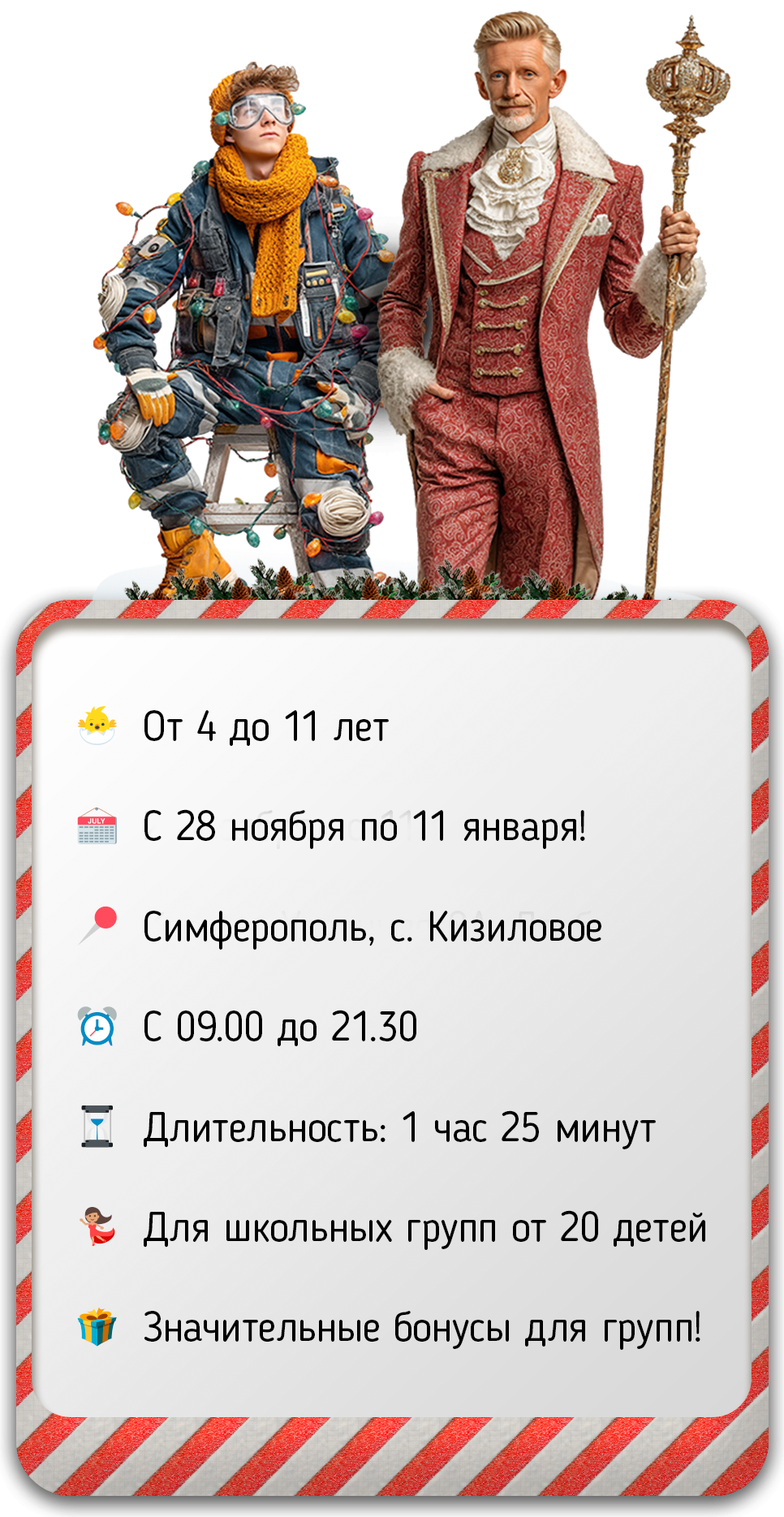 Большое новогоднее расследование! По ходу программы дети разгадают тайну хранителей времени, восстановят капсулы времени и выведут на чистую воду злодея министерства. Всё это будет красиво, загадочно и технологично!