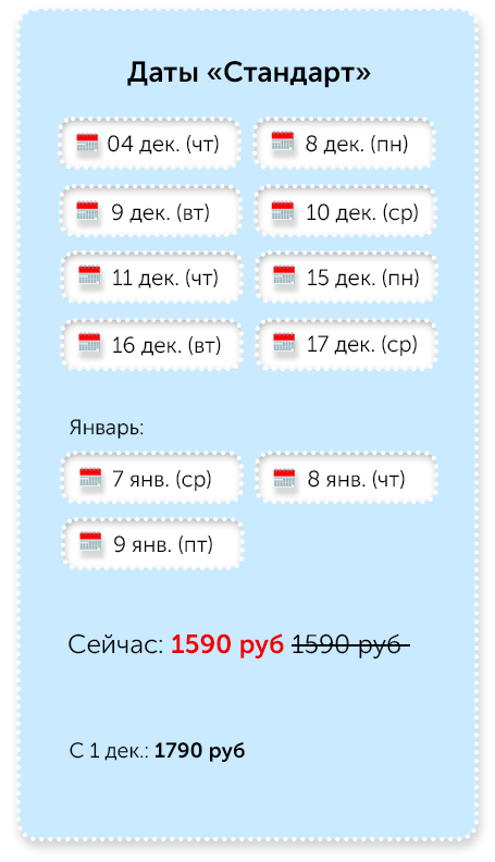 Вы вносите предоплату за группу всего 5000 руб, чтобы закрепить за собой дату